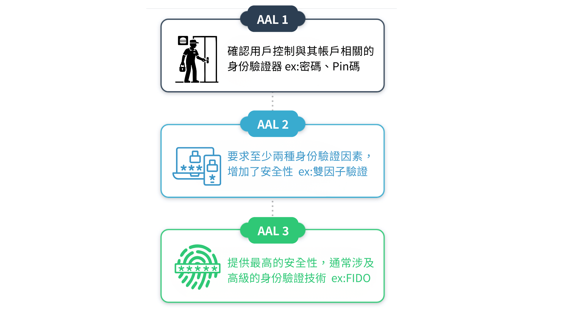 | 多因子驗證 | TOTP、簡訊、APP動態碼、FIDO | 第二道或多重身分確認 |